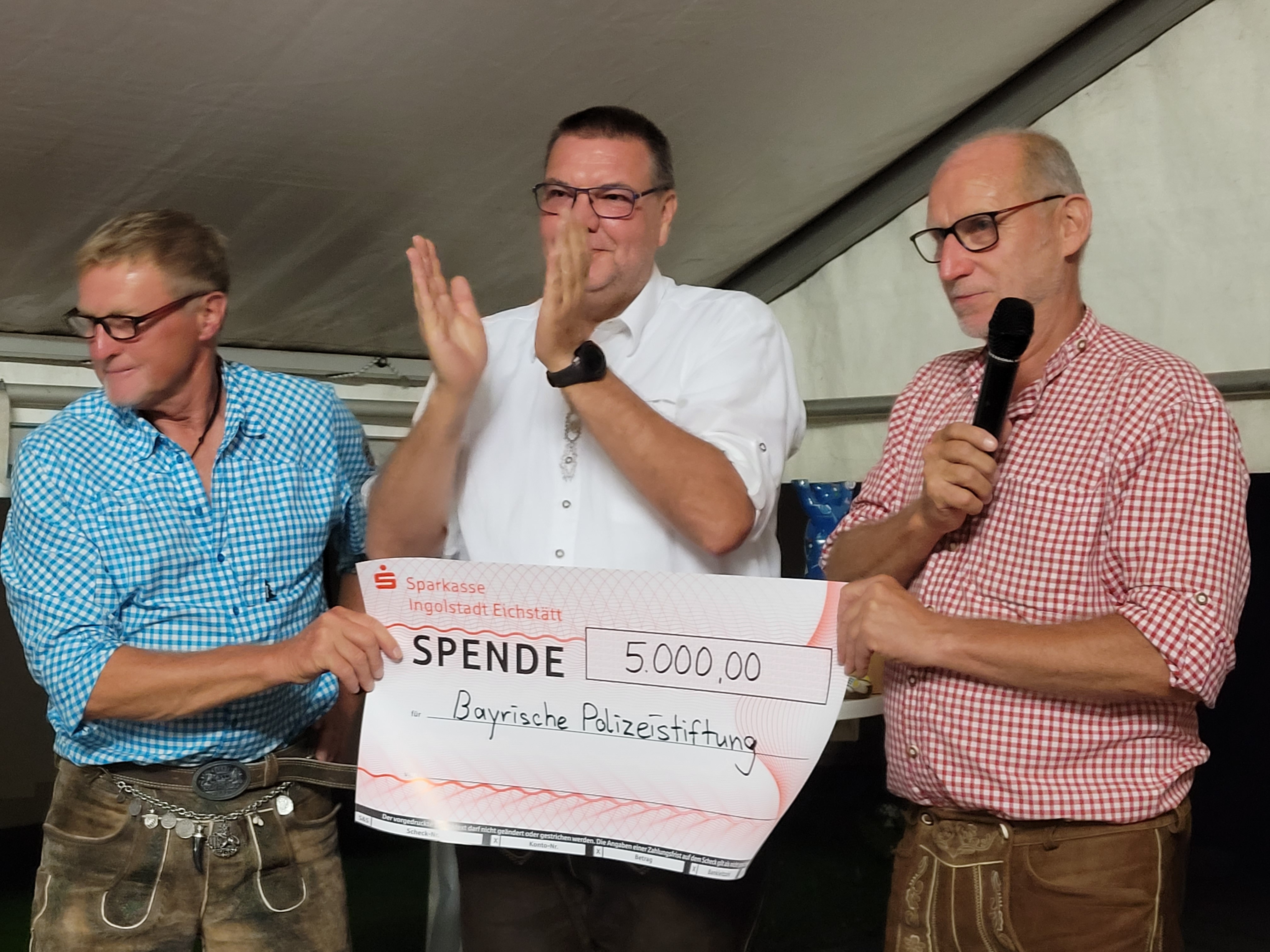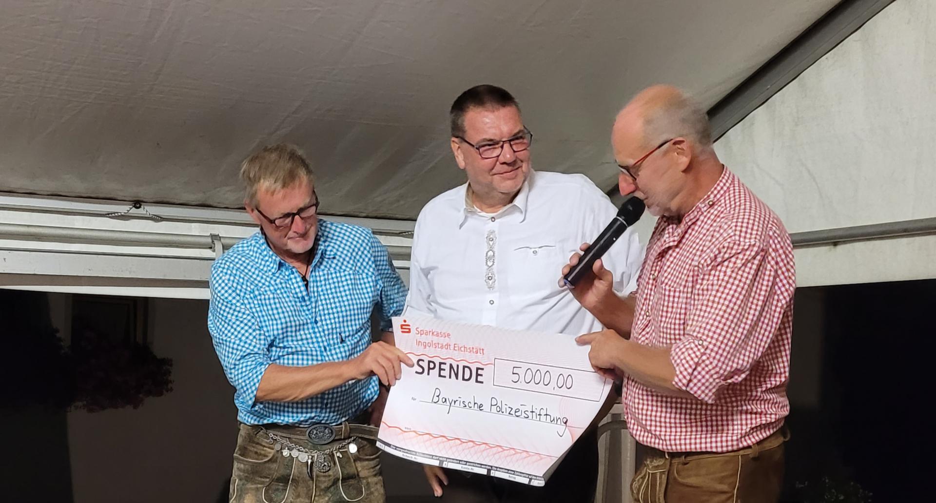 Unser Vorsitzender Thomas Lintl nahm durch die Organisatoren Norbert und Helmut eine Spende von 5000 Euro entgegen.