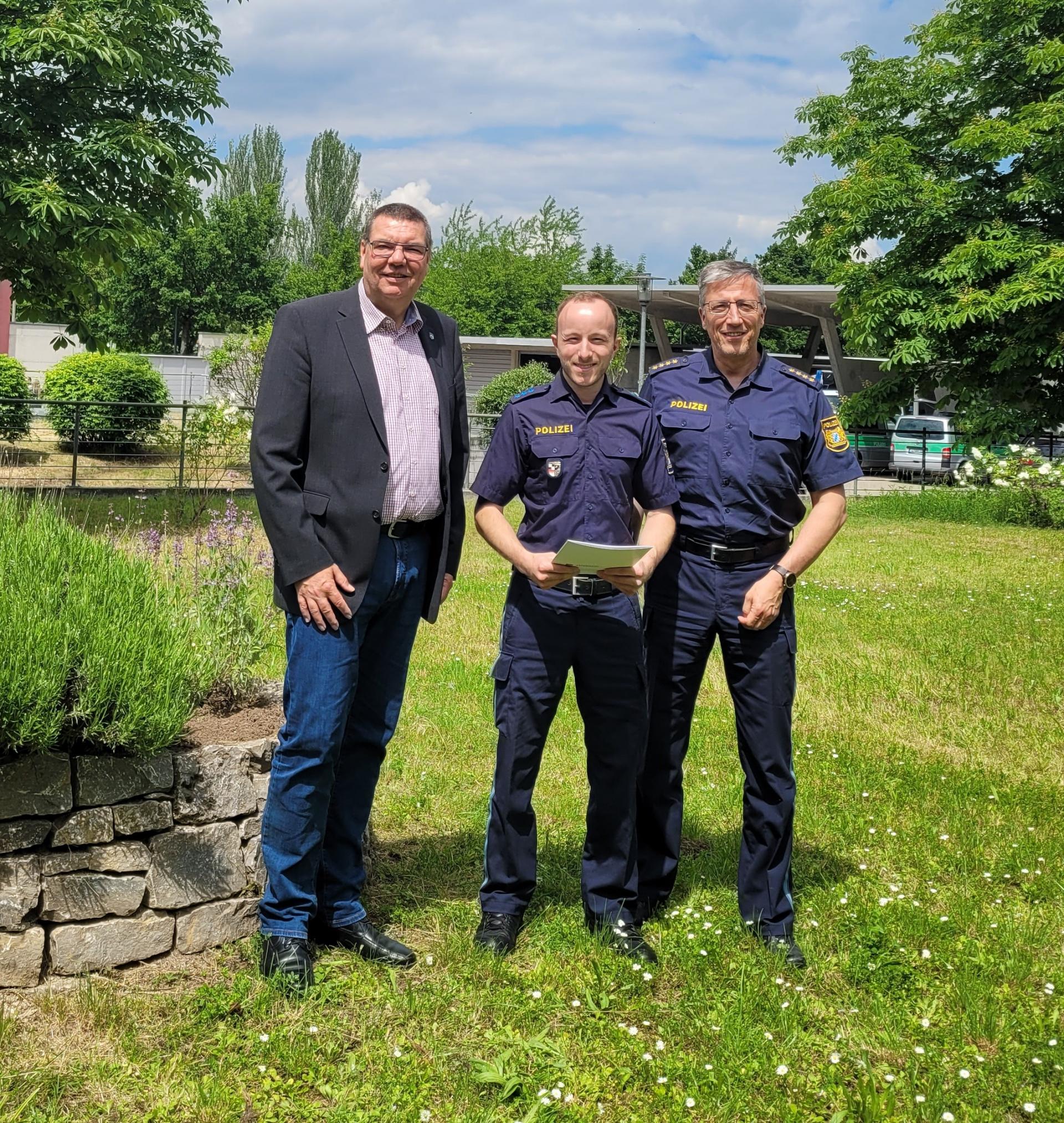 Im Beisein des Dienststellenleiters LPD Bernd Wolf überreichte der Stiftungsvorsitzende Thomas Lintl unlängst eine Zuwendung an den jungen Kollegen.